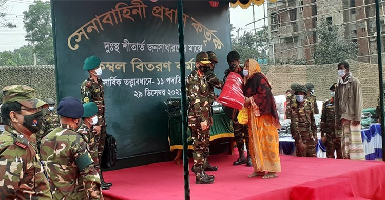 তিনি বুধবার(২৯ ডিসেম্বর) বেলা সাড়ে ১২টার সেনাবাহিনীর শীত কালীন প্রশিক্ষনের অংশ হিসেবে সিরাজগঞ্জের শাহজাদপুর উপজেলার নুকালী বহু পাশ্বিক উচ্চ বিদ্যালয় মাঠে আড়াই হাজার শীতার্ত মানুষের মাঝে কম্বল বিতরন অনুষ্ঠানে প্রধান অতিথির বক্তব্যে এসব কথা বলেন।