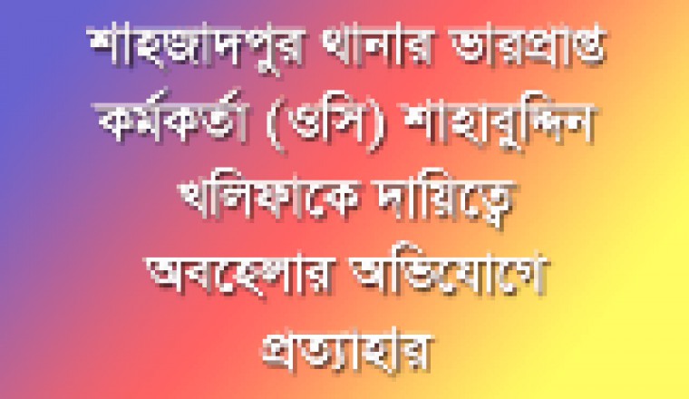 শাহজাদপুর প্রতিনিধিঃ  শাহজাদপুর থানার ভারপ্রাপ্ত কর্মকর্তা (ওসি) শাহাবুদ্দিন খলিফাকে থানা থেকে প্রত্যাহার করে সিরাজগঞ্জ পুলিশ লাইন্স এ সংযুক্ত করা হয়েছে। আজ সকালে পুলিশ সুপারের কার্যালয় থেকে তাকে প্রত্যাহারের এই আদেশ প্রদান করা হয়। সিরাজগঞ্জের পুলিশ সুপার এস এম এমরান হোসেন জানান, থানায় যোগদানের পর থেকেই কাজে ধীরগতি ও বিভিন্ন মামলার অগ্রগতিতে গাফিলতি সহ প্রশাসনিক কারনে জেলার শাহজাদপুর থানার ভারপ্রাপ্ত কর্মকর্তাকে পুলিশ লাইন্সে সংযুক্ত করা হয়েছে।   বিস্তারিত আসছে............................