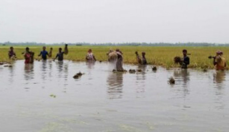 জয়নাল আবেদীন জয়, উল্লাপাড়া ও শামছুর রহমান শিশির, শাহজাদপুর : দেশের সর্ববৃহৎ বিল চলনবিলের ১৪ উপজেলার নিম্নাঞ্চল গত কয়েক দিনের ভারীবর্ষণে তলিয়ে গেছে। এ অঞ্চলের হাজার হাজার বিঘা জমির কাঁচা পাঁকা বোরো ধান বৃষ্টির পানিতে তলিয়ে যাওয়ায় চরম কৃষকেরা অার্থিক দিক বিবেচনায় মারাত্বক ক্ষতির সন্মূখীন হওয়ায় তারা দিশেহারা হয়ে পড়েছে । অনেকে উপায়ান্ত না পেয়ে বাধ্য হয়ে কাঁচা ও আধাপাঁকা ধান কাটতে শুরু করেছে। নদ-নদী খাল-বিল বৃষ্টির পানিতে ভরে যাওয়া তা নিচু এলাকায় নেমে আসায় এ অবস্থার সৃষ্টি হয়েছে। গত কয়েকদিনের বৈরী আবহাওয়ায় আর বৃষ্টিতে চলনবিলের কৃষকরা দিশেহারা হয়ে পড়েছে। বৃষ্টিতে চলনবিলের নিচু বোরো ধান ক্ষেত তলিয়ে গেছে। চলনবিলে এবার রেকর্ড পরিমান জমিতে বোরো ধানের চাষাবাদ করা হয়েছে । ধান শীষ ফুলে ফেঁপে ওঠায় এ কৃষকেরা অনেক আশায় বুক বাধলেও সেই আশা বৃষ্টির নীচে ধানের মতোই তলিয়ে গেছে । ফলে তারা স্বপ্নভঙ্গের দুঃশ্চিন্তায় বিচলিত হয়ে পড়েছে। চলতি মৌসুমে এ অঞ্চলে আগুর ধানের ভালো ফলন হয়েছে। কিন্তু গত কয়েক দিনে এ অঞ্চলের ওপর দিয়ে বয়ে যাওয়া কালবৈশাখী আর ভারী বর্ষণে বিভিন্ন স্থানে ফুলে ফেঁপে ওঠা আগুর ধান তলিয়ে যাওয়ায় মহাবিপাকে পড়েছে কৃষক। ইতিমধ্যে চলনবিলের বিভিন্ন এলাকার নিচু বোরো ধান ক্ষেত বৃষ্টির পানিতে তলিয়ে গেছে। নিচু এলাকার জমিতে ধানের শীর্ষ পর্যন্ত পানি বেধে গেছে। বেশির ভাগ এলাকায় পানিতে তলিয়ে যাওয়ায় কৃষকরা বাধ্য হয়ে কাঁচা ধান কাটতে বাধ্য হচ্ছে। এতে নামমাত্র ফলন পাওয়া যাচ্ছে। চলনবিলের বিভিন্ন স্থানে কৃষককে কোমর পানিতে নেমে দল বেধে কাঁচা ধান কাটতে দেখা যাচ্ছে । নৌকায় করে সেই ধান আবার পাড়ে আনা হচ্ছে। আধা পাঁকা ধান পানিতে তলিয়ে যাওয়ায় তা অনেকটাই নষ্ট হয়ে গেছে। উচ্চ মুল্যে শ্রমিক লাগিয়ে কৃষকরা খড় আর কিছু ধান পাওয়ার আশায় বাধ্য হয়ে সেই কাঁচা ধানই কাটছেন। চলনবিলের উল্লাপাড়ার কৃষক মো.শাহজাহান আলী আক্ষেপ প্রকাশ করে জানালেন, বৃষ্টিতে সর্বনাশ করে দিয়ে গেছে। বিলাঞ্চলে তার কয়েক বিঘা জমির কাঁচা ধান বৃষ্টির পানিতে তলিয়ে গেছে। উচ্চ মূল্যে শ্রমিক লাগিয়ে তিনি খড় আর কিছু ধান পাওয়ার আশায় সেই কাঁচা ধানই কাটছেন। তার মত একই অবস্থা এই বিলের অনেক কৃষকের। তিনি জানান,শুধু বিল নয় এই এলাকার অনেক নিচু আধা পাকা বোরো ধান ক্ষেতে এখন ধানের শীর্ষ পর্যন্ত পানি আটকে আছে। এসব জমিতে ধান কাটতে শ্রমিকদের দ্বীগুন পারিশ্রমিক দিতেও শ্রমিক সংকটে তা যথাসময়ে কেটে ঘরে তোলা সম্ভব হবে কি না, এ ক্ষেত্রেও চরম অনিশ্চয়তার সৃষ্টি হয়েছে। সেই সাথে ধান কাটার পর নৌকায় পাড়ে এনে তা বহন করে বাড়িতে আনতে দীর্ঘ সময় লাগছে। এতে উৎপাদন ব