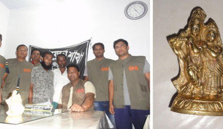 শনিবার রাত ১১টার দিকে চুয়াডাঙ্গা জেলা সদরের আলুকদিয়া আকন্দবাড়িয়ার আবুল হোসেনের ছেলে নাজমুল হককে (৩৫) মূর্তিসহ গ্রেফতার করা হয়। গ্রেফতারের পর প্রাথমিক জিজ্ঞাসাবাদে তিনি বলেছেন, মূর্তিটি কয়েকদিন আগে আমারই সেজো ভাই আজিজুল হক আমাকে বিক্রি করতে দেন। পাওনা ৩০ হাজার টাকা আদায়ের জন্য মূর্তিটি বিক্রি করতে রাজি হই। খদ্দের খুঁজতে থাকি। ছানোয়ারকে বলি। দাম দেয়া হয় ৪০ লাখ টাকা। কয়েকজন খদ্দের গোপনে মূর্তিটি দেখে ফিরে গেছে। শনিবার রাতে কয়েকজন খদ্দের মূর্তিটি দেখছিলো। এমন সময় একদল পুলিশ গ্রেফতার করলো।