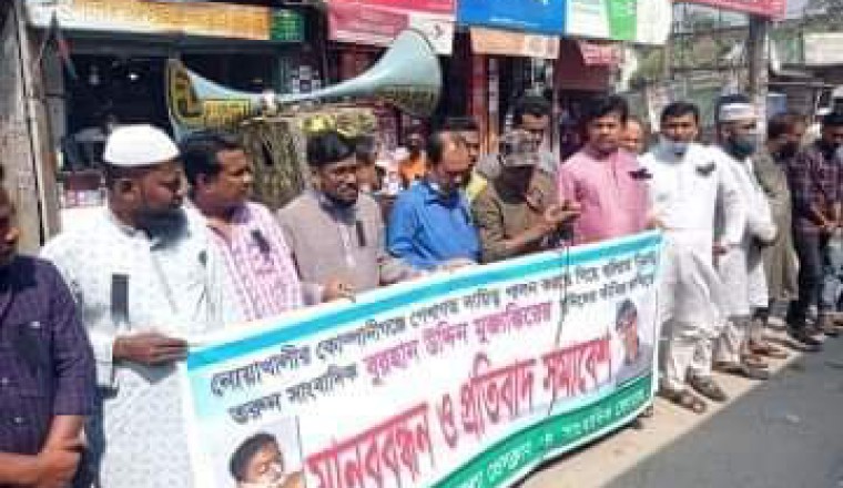 নোয়াখালীর কোম্পানীগঞ্জে আ,লীগের দু'গ্রুপ কাদের মির্জা ও বাদলের সংঘর্ষের সময় পেশাগত দ্বায়িত্ব পালনের সময় দৈনিক বাংলাদেশ সমাচার পত্রিকার জেলার বিশেষ প্রতিনিধি বুরহান উদ্দিন মুজাক্কির গুলিবিদ্ধ হয়ে মৃত্যুর ঘটনায় প্রতিবাদে সমাবেশ করেছে চাটখিল উপজেলার সাংবাদিকরা। চাটখিল পৌর শহরের প্রধান সড়কে রবিবার ২১শে ফেব্রুয়ারী দুপুরে অনুষ্ঠিত চাটখিল উপজেলা প্রেসক্লাবের ও সাংবাদিক ফোরামের উদ্যোগে আয়োজিত এই সমাবেশে উপজেলা প্রেসক্লাবের সাধারন সম্পাদক কামরুল কাননের সঞ্চালনায় বক্তব্য রাখেন, প্রেসক্লাব সভাপতি মিজানুর রহমান বাবর, সাংবাদিক ফোরাম সভাপতি আবু তৈয়ব, সাংবাদিক ইয়াছিন চৌধুরী, আনিস আহমেদ হানিফ, জাহাঙ্গীর আলম,স্বপন পাটোয়ারী, নজরুল দেওয়ান, মহি উদ্দিন বাবু প্রমূখ। উপস্থিত ছিলো সাংবাদিক আলা উদ্দিন, সাইফুল ইসলাম রিয়াদ, মোঃ বেল্লাল হোসেন নাঈম, ফরিদ খানসহ উপজেলা কর্মরত বিভিন্ন ইলেক্ট্রনিক ও প্রিন্ট মিডিয়ার সাংবাদিকগণ। সমাবেশে বক্তারা সাংবাদিক মুজাক্কিরের হত্যাকারীদের দ্রুত গ্রেফতার করে বিচারের আওতায় এনে ফাঁশির দাবী জানান। উল্লেখ্য,গত শুক্রবার (১৯ ফেব্রুয়ারি) বিকেল ৫টার দিকে উপজেলার চরফকিরা ইউনিয়নের চাপরাশিরহাট তরকারি বাজারের বাংলাদেশ আওয়ামী লীগের সাধারণ সম্পাদক ও সেতুমন্ত্রী ওবায়দুল কাদেরর ছোট ভাই আঃকাদের মির্জা ও সাবেক উপজেলা চেয়ারম্যান বাদল গ্রুপের মধ্যে রক্তক্ষয়ী সংঘর্ষ ও গোলাগুলির ঘটনা ঘটে। সাংবাদিক মুজাক্কির সংঘর্ষের সংবাদ সংগ্রহের সময় গলায় ফোরভোলগুলি বিদ্ধ হন। শনিবার (২০ ফেব্রুয়ারি) রাত ১০:৫০ মিনিটে ঢাকা মেডিকেল কলেজ হাসপাতালের আইসিউতে চিকিৎসাধীন অবস্থায় তাঁর মৃত্যু হয়। উপজেলার চরফকিরা ইউনিয়নের ৫নং ওয়ার্ডের নোয়াব আলী মাষ্টারের ছেলে।