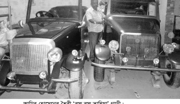 শাহজাদপুর সংবাদ ডটকম : তেল গ্যাস ছরাই চলবে এমন এক গাড়ী আবিস্কার করেছেন বগুড়ার যন্ত্রকৌশলী আমির হোসেন।তিনি উদ্ভাবন করেছেন ইলেকট্রিক টারবাইন সিষ্টেমের পরিবেশ বান্ধব এ গাড়ী। নাম দিয়েছেন ‘রফ-রফ তাহিয়া’ যার প্রকৃত অর্থ হলো সুন্দর ও দ্রুততম যান।
