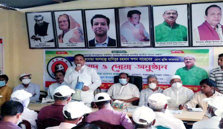 সিরাজগঞ্জ শাহজাদপুরে স্থানীয় সংসদ সদস্য ও উপজেলা আওয়ামীলীগের সভাপতি বীর মুক্তিযোদ্ধা আলহাজ্ব হাসিবুর রহমান স্বপন এর রোগমুক্তি কামনায় শনিবার (১২ সেপ্টেম্বর) সকালে বঙ্গবন্ধু পরিষদ শাহজাদপুর উপজেলা শাখা কার্যালয়ে বঙ্গবন্ধু পরিষদ শাহজাদপুর এর উদ্যেগে মিলাদ ও দোয়া অনুষ্ঠিত হয়।