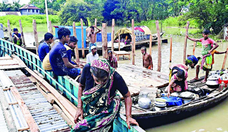 দেশের উত্তরের বিভিন্ন জেলায় বন্যা পরিস্থিতি এবার ১৯৮৮ ও ১৯৯৮ সালের চেয়েও ভয়াবহ রূপ ধারণ করেছে। পূর্ব ও উত্তরাঞ্চলের কোনো কোনো জেলা-উপজেলায় নিম্নাঞ্চল ছাপিয়ে বন্যার পানি ঢুকে পড়েছে শহরাঞ্চলেও। করোনার এই কালবেলায় দীর্ঘমেয়াদি বন্যা মড়ার ওপর খাঁড়ার ঘা হয়ে দাঁড়িয়েছে। এই কঠিন পরিস্থিতিতেও ত্রাণের পরিমাণ অপ্রতুল বলে জানাচ্ছে দুর্গত মানুষ। সব মিলিয়ে বানভাসিরা চরম সংকটে দিন পার করছে। বন্যাদুর্গত এলাকায় পানিবন্দি মানুষের পাশাপাশি গবাদি পশুর বাসস্থান ও খাদ্যের তীব্র সংকট দেখা দিয়েছে। অনেকে তাদের গবাদি পশু নিয়ে উঁচু সড়ক ও সেতুতে আশ্রয় নিয়েছে। কেউ কেউ খোলা আকাশের নিচে অসহায় জীবন যাপন করছে। দিনভর ত্রাণের আশায় তাকিয়ে থাকলেও তা অনেকের ভাগ্যেই মিলছে না। কিছু এলাকায় দেখা দিয়েছে পানীয় জলের সংকট। বন্যা পূর্বাভাস ও সতর্কীকরণ কেন্দ্র সূত্রে জানা যায়, গতকাল শুক্রবার দেশের উত্তরাঞ্চলে বন্যা পরিস্থিতির অবনতি হয়েছে। তবে কিছুটা উন্নতি হয়েছে পূর্বাঞ্চলে। আগামী ২৪ ঘণ্টায় সিলেট, সুনামগঞ্জ, ব্রাহ্মণবাড়িয়া ও নেত্রকোনা জেলার বন্যা পরিস্থিতির উন্নতি হতে পারে। মানিকগঞ্জ, মুন্সীগঞ্জ, ফরিদপুর, মাদারীপুর, চাঁদপুর, রাজবাড়ী, শরীয়তপুর ও ঢাকা জেলার নিম্নাঞ্চলে বন্যা পরিস্থিতি স্থিতিশীল থাকতে পারে। অন্যদিকে কুড়িগ্রাম, গাইবান্ধা, নাটোর, বগুড়া, জামালপুর, সিরাজগঞ্জ, টাঙ্গাইল ও নওগাঁ জেলার বন্যা পরিস্থিতির অবনতি হতে পারে। পূর্বাভাসে আরো বলা হচ্ছে, ব্রহ্মপুত্র-যমুনা নদ-নদীর পানি বৃদ্ধি পাচ্ছে, যা আগামী ৪৮ ঘণ্টা পর্যন্ত অব্যাহত থাকতে পারে। আগামী ২৪ ঘণ্টায় পদ্মার পানি বৃদ্ধি পেতে পারে। উত্তর-পূর্বাঞ্চলের উজানে মেঘনা অববাহিকার প্রধান নদীগুলোর পানি কমছে, যা আগামী ৪৮ ঘণ্টা পর্যন্ত অব্যাহত থাকতে পারে। ঢাকা জেলার আশপাশের নদীগুলোর পানি বাড়ছে, যা আগামী ৪৮ ঘণ্টা পর্যন্ত অব্যাহত থাকতে পারে। বর্তমানে পর্যবেক্ষণাধীন ১০১টি পানি স্টেশনের মধ্যে বাড়ছে ৪৯টির, কমছে ৪৯টির এবং স্থিতিশীল রয়েছে তিনটির। বন্যায় আক্রান্ত জেলা ২০টি। বিপত্সীমার ওপর দিয়ে ১৯টি নদীর পানি প্রবাহিত হচ্ছে। আর বিপত্সীমার ওপরে পানি প্রবাহিত হওয়া স্টেশনের সংখ্যা ৩০। তবে বৃষ্টিপাতের প্রবণতা কমেছে। চাঁদপুরে নদীভাঙনে ক্ষতিগ্রস্ত মানুষের দুর্গতির শেষ নেই। ভাঙনের শিকার হয়ে নদীতে সহায়-সম্বল হারিয়ে অনেকেই খোলা আকাশের নিচে অবস্থান করছে। জেলার হাইমচরে মেঘনা নদীর পশ্চিমে মিয়ারচর এলাকায় বিপর্যস্ত হয়ে কয়েক শ পরিবার অন্যত্র আশ্রয় নিয়েছে। জেলা সদরের রাজরাজেশ্বর ইউনিয়নের পাঁচটি চরে পদ্মা নদীর ভাঙন চলছে। চাঁদপুর জেলা প্রশাসন সূত্রে জানা গেছে, দুর্যোগ অধিদপ