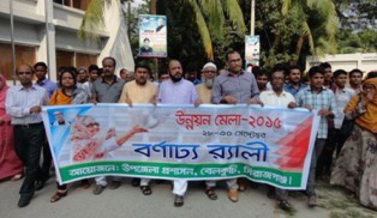 বেলকুচি প্রতিনিধিঃ সিরাজগঞ্জের বেলকুচি উপজেলায় তিন দিন ব্যাপি উন্নয়ন মেলার শুভ উদ্বোধন, র্যালি ও আলোচনা সভা অনুষ্ঠিত হয়েছে। গত সোমবার বিকেলে উন্নয়ন মেলার শুভ উদ্বোধন উপলক্ষে এক র্যালি উপজেলা পরিষদ চত্তর থেকে শুরু হয়ে প্রধান প্রধান সড়ক প্রদক্ষিন শেষে আবার উপজেলা পরিষদ চত্তরে এসে শেষ হয়। র্যালি শেষে আলোচনা সভায় উপজেলা নির্বাহী কর্মকর্তা মোহাম্মদ সাইফুল ইসলামের সভাপতিত্বে প্রধান অতিথি হিসেবে বক্তব্য রাখেন বেলকুচি-চৌহালী আসনের সংসদ সদস্য আলহাজ আব্দুল মজিদ মন্ডল। আরো বক্তব্য রাখেন উপজেলা মহিলা ভাইস চেয়ারম্যান সুলতানা রাজিয় মিলন, উপজেলা আওয়ামীলীগের সভাপতি আলহাজ এ.কে.এম ইউসূফজী খান, বেলকুচি প্রেসক্লাবের সভাপতি আলহাজ গাজী সাইদুর রহমান, স্বাস্থ্য মন্ত্রীর এ পিএস ও জেলা আওয়ামীলীগের সাবেক সদস্য মীর মোশারফ হোসেন, থানা অফিসার ইনজার্চ আনিসুর রহমান, মাধ্যমিক শিক্ষা অফিসার এসএম গোলাম রেজা,চেয়ারম্যান ফরিদ আহম্মেদ প্রমুখ।এসময় উপজেলা পর্যায়ের সকল কর্মকর্তা বৃন্দ উপস্থিত ছিলেন। অনুষ্ঠানটি সঞ্চলনা করেন উপজেলা সমাজ সেবা কর্মকর্তা আব্দুল হামিদ।