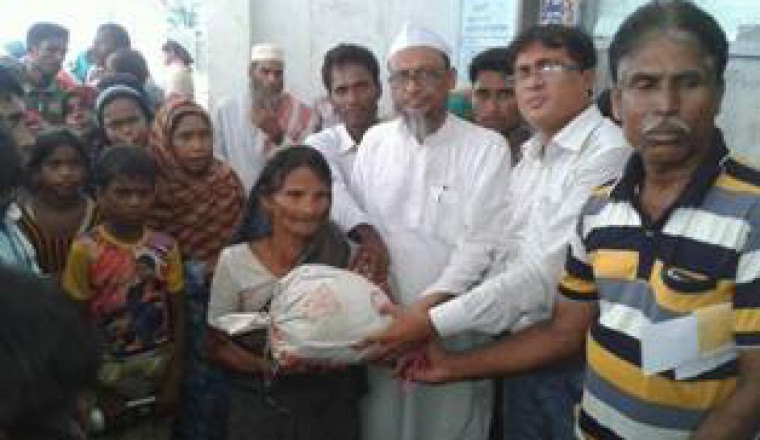 শাহজাদপুরে বেদেপল্লিতে মেরিনা জাহানের খাদ্য সামগ্রী