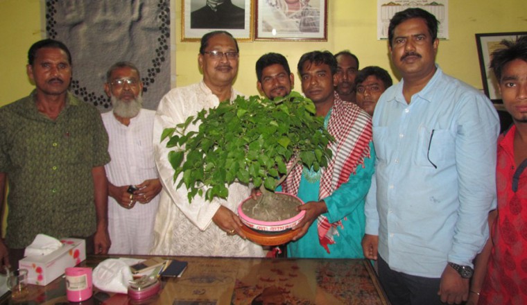 শাহজাদপুর উপজেলা সংবাদদাতা: ঈদে প্রিয়জনকে জামা কাপড় প্রদানের পাশাপাশি ৩টি করে গাছ উপহার দেওয়ার চিন্তা মাথায় রেখে শাহজাদপুরে সবুজ বিপ্লবের উদ্যোক্তা কামরুল হাসান হিরোক গতকাল রোববার স্থানীয় সংসদ সদস্য হাসিবুর রহমান স্বপনের বাসভবনে হাতে একটি বটবৃক্ষ তুলে দেন। এ সময় স্থানীয় সংসদ সদস্য বীর মুক্তিযোদ্ধা হাসিবুর রহমান স্বপন বলেন,‘ভবিষ্যত প্রজন্মকে রক্ষা করতে বৃক্ষরোপণ আমাদের জন্য অতীব জরুরী। তিনি এই ব্যাতিক্রমী উদ্যোগকে স্বাগত জানানোর পাশাপাশি বঙ্গবন্ধুর সোনার বাংলা এবং প্রধানমন্ত্রী জননেত্রী শেখ হাসিনার সুজলা, সুফলা,শষ্য শ্যামল ও ডিজিটাল বাংলাদেশ গড়ে তুলতে কামরুল হাসান হিরোকের মতো সবাইকে বৃক্ষ রোপণের উদাত্ত আহবান জানান। এ সময় অন্যান্যের মধ্যে শাহজাদপুর উপজেলা পরিষদের ভাইস চেয়ারম্যান মুস্তাক আহমেদসহ দলীয় নেতাকর্মীরা উপস্থিত ছিলেন। সবুজ বিপ্লবের উদ্যোক্তা কামরুল হাসান হিরোক বলেন,‘ যে ভাবে দেশ থেকে বৃক্ষ নিধন করা হচ্ছে, সে হারে বৃক্ষ রোপণ করা হচ্ছে না। আমাদের দেশ সমুদ্র তীরবর্তী নীচু দেশ। বায়ুমন্ডলে যে হারে কার্বনের পরিমান দিন দিন বাড়ছে তাতে বিশ্ব পরিবেশবাদী সংগঠনের নেতৃবৃন্দ চরম উদ্বেগ প্রকাশ করছেন। বায়ুমন্ডলে কার্বনের পরিমান বাড়ায় গ্রীন হাউজে এর মারাত্বক নেতিবাচক প্রভাব পড়ছে। বায়ুমন্ডলে তাপমাত্রা বৃদ্ধি পাচ্ছে। ফলে হিমশীতল দেশসমূহের বরফ গলে সমুদ্রপৃষ্ঠে পানির উচ্চতা দিন দিন বাড়ছে। এটি রোধ করা না গেলে অদূর ভবিষ্যতে বাংলাদেশের সমুদ্র তীরবর্তী বিশাল অংশ সমুদ্রগর্ভে চলে যাবে।তাই দেশ ও ভবিষ্যত প্রজন্মকে রক্ষায় সবারই বৃক্ষ রোপণ করা অতীব জরুরী। এজন্য ঈদে জামাকাপড়ের পাশাপাশি বৃক্ষরোপণের বর্তমান উপযুক্ত সময়ে তিনি শাহজাদপুর পৌরসদরসহ ১৩টি ইউনিয়নের বিভিন্ন স্থানে বিভিন্ন গাছের চারা ঈদের উপহার হিসাবে বিতরণ করছেন।’ সবুজ বিপ্লবের উদ্যোক্তা কামরুল হাসান হিরোক ব্যাক্তি উদ্যোগে গত কয়েক বছরে শাহজাদপুরের বিভিন্ন স্থানে ২০ হাজার বৃক্ষ রোপণ করেছেন।