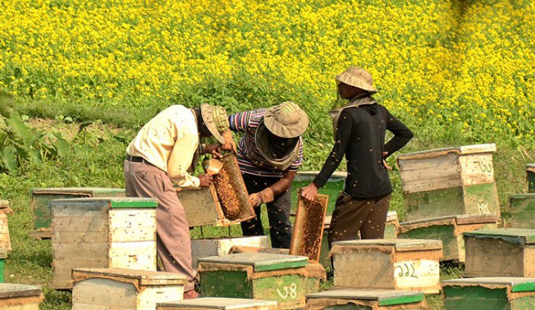 শামছুর রহমান শিশিরঃ তাপমাত্রা বৃদ্ধি, বসবাসের উপযোগী পরিবেশের অভাব, ফসলে কীটনাষকের অতিমাত্রায় প্রয়োগ,আনাড়ি মধু সংগ্রহকারীদের দ্বারা মৌচাকে অগ্নিসংযোগে মৌমাছিকে পুরিয়ে মেরে ফেলা, খাদ্যের অভাবসহ বহুবিধ কারনে কৃষিপ্রধান দেশে পরাগায়নে ব্যাপক সফল ভূমিকা রক্ষাকারী মুক্ত মৌমাছির সংখ্য ও আনাগোনা আশংকাজনক হারে দিন দিন কমছে । মৌমাছির আনাগোনার হার কমতে কমতে এতটাই কমেছে যে গ্রাম গঞ্জের বিভিন্ন ফলবান বৃক্ষে আগের মতো আর মুক্ত মৌমাছি চাক বা বাসা বাধছে না।প্রতিকূল আবহাওয়া ও মনুষ্যসৃষ্টি বহুমূখী সমস্যায় জর্জরিত হয়ে মুক্ত মৌমাছি ক্রমেই বাক্সবন্দী হয়ে পড়ছে।বিশেষ করে নানা সমস্যায় জর্জরিত এসব মৌমাছি উপযুক্ত বাসযোগ্য আবাসের অভাবে সুন্দরবন ভিত্তিক একটি বিশেষ এলাকাকেন্দ্রিক হয়ে পড়ছে।দেশের উত্তরাঞ্চলসহ উত্তর পশ্চিমাঞ্চল ও উত্তর পূর্বঅঞ্চল এলাকা থেকে মুক্ত মৌমাছি ফুলের অভাবে চলে যাচ্ছে সুন্দরবন এলাকায়।মৌমাছির প্রজনন বৃদ্ধি ও সংরক্ষণের অভাবে যে হারে উত্তরাঞ্চলসহ উত্তর পশ্চিমাঞ্চল ও উত্তর পূর্বঅঞ্চল এলাকা থেকে মুক্ত মৌমাছি দক্ষিণ এলাকায় চলে যাচ্ছে তাতে মৌমাছির প্রজনন ও আনাগোনা একটি বিশেষ অঞ্চলভিত্তিক হয়ে পড়ছে।মৌমাছির প্রজনন বিঘ্নিত হওয়ায় তারা ক্রমাগত কোনঠাসা হয়ে পড়ছে।সংরক্ষণের কোন উদ্যোগ নেই ! চলনবিল অঞ্চলে মধু সংগ্রহকারী মৌচাষীরা জানিয়েছেন, অতীতে দেশে আম, জাম, কাঠাল, বিভিন্ন বুঁনো ফুলগাছসহ বিভিন্ন ফসলের ফুলের মধুর ওপর ভিত্তি করে প্রচুর মৌমাছির বাস ছিল গ্রামগঞ্জে।এ সময় মুক্ত মৌমাছি আমগাছে বাসা করে মধু সংগ্রহ ও বংশবৃদ্ধি ঘটাতো।মাত্র দুইযুগ আগেও এমন কোন গ্রাম খুঁজে পাওয়া যেতো না যে গ্রামে একটিও মৌমাছির চাক নেই।বর্তমানে দেশের উত্তরাঞ্চলসহ উত্তর পশ্চিমাঞ্চল ও উত্তর পূর্বঅঞ্চল এলাকায় তাপমাত্রা বৃদ্ধি পাওয়ায় এবং শুষ্ক আবহাওয়া ও জলবায়ুর কারণে মৌমাছিদের বসবাস ও বংশবৃদ্ধিতে চরম নেতিবাচক প্রভাব পড়ছে।জলীয় আবহাওয়া বিরাজমান এলাকায় দিন দিন চলে যাচ্ছে মৌমাছি।অতীতে আম, জাম, কাঠালসহ বিভিন্ন ফলবান বৃক্ষ পরিলক্ষিত হলেও ক্রমবর্ধিত জনসংখ্যার প্রবল তোড়ে এসব গাছপালা ও বনাঞ্চল কেটে উজাড় করে দেওয়ায় মৌমাছিদের বসবাস ও প্রজনন বিঘ্নিত হচ্ছে।কৃষিপ্রধান এ দেশের অজ্ঞ কৃষকেরা অতিমাত্রায় কীটনাষক ফসলী জমিতে ব্যবহার করছেন।ফসলী জমিতে অতিমাত্রায় কীটনাষকের ব্যবহারের ফলে মৌমাছি কীটনাষক পানে মারা যাচ্ছে।এছাড়া আনাড়ি মধু সংগ্রহকারীদের ধারনা, মৌচাক থাকলেই মধু পাওয়া যাবে।তাদের এ ভ্রান্ত ধারনায় মধু সংগ্রহ করতে তারা আগুণ জ্বেলে মৌমাছি পুরিয়ে মেরে ফেলছে।ফলে মৌমাছির বংশবৃদ্ধি মারাত্বকভাবে ব্যহত হচ্ছে। বিশেষজ্ঞ ক