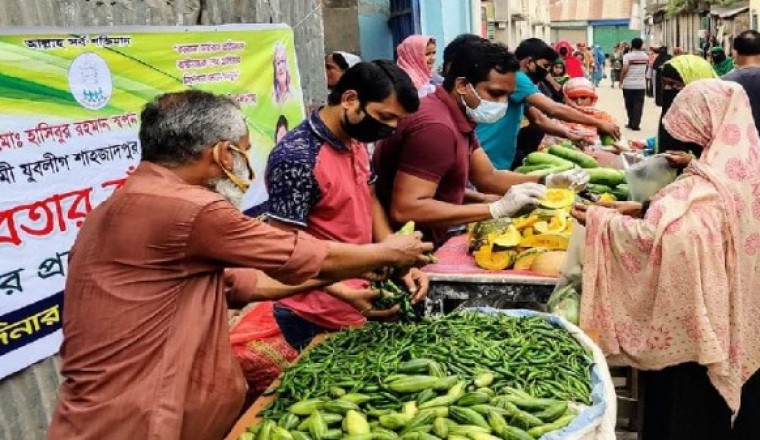 করোনাভাইরাসের কারণে কর্মহীন হয়ে পড়া অসহায়দের জন্য ব্যক্তিগত উদ্যোগে মানবতার বাজার চালু করেছে সিরাজগঞ্জের শাহজাদপুর উপজেলা যুবলীগের আহ্বায়ক আশিকুল হক দিনার।