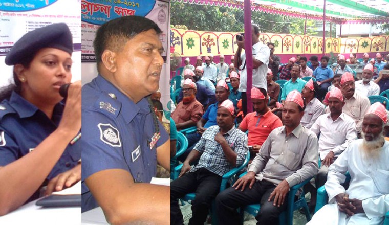 শামছুর রহমান শিশির, শাহজাদপুর (সিরাজগঞ্জ) থেকে : ‘জঙ্গি মাদক প্রতিকারে, জনতা পুলিশ এক কাতারে’ এই প্রতিপাদ্য বিষয়কে সামনে রেখে আজ শনিবার জেলা পুলিশের আয়োজনে শাহজাদপুরে কমিউনিটি পুলিশিং ডে-২০১৭ উপলক্ষে বর্ণাঢ্য র‌্যালি, আলোচনা সভা ও সাংস্কৃতিক অনুষ্ঠান অনুষ্ঠিত হয়েছে। এদিন সকালে থানা চত্বর থেকে বিশাল বর্ণাঢ্য র‌্যালি বের হয়। র‌্যালিটি পৌরসদরের গুরুত্বপূর্ণ সড়ক প্রদক্ষিণ শেষে থানা চত্বরে গিয়ে শেষ হয়। দুপুরে থানার অফিসার ইনচার্জ মোঃ খাজা গোলাম কিবরিয়ার সভাপতিত্বে থানা প্রাঙ্গণে অনুষ্ঠিত আলোচনা সভায় প্রধান অতিথি হিসেবে বক্তব্য রাখেন শাহজাদপুর উপজেলা পরিষদ চেয়ারম্যান প্রফেসর আজাদ রহমান। মুখ্য আলোচক হিসেবে কমিউনিটি পুলিশিং এর তাতপর্যপূর্ণ ও বিশ্লেষণাত্বক বক্তব্য রাখেন অতিরিক্ত পুলিশ সুপার (শাহজাদপুর সার্কেল) ফাহমিদা হক শেলী। সভায় বিশেষ অতিথি হিসেবে বক্তব্য রাখেন, উপজেলা দুর্নীতি প্রতিরোধ কমিটির সভাপতি এ,এম আব্দুল আজীজ, পৌরসভার মেয়র (দায়িত্বপ্রাপ্ত) নাসির উদ্দিন, উপজেলা ভাইস চেয়ারম্যান মুস্তাক আহমেদ, থানার পুলিশ পরিদর্শক (তদন্ত) কে.এম রাকিবুল হুদা, পরিদর্শক (অপারেশন ও কমিউনিটি পুলিশিং) আসলাম হোসেন, মুক্তিযোদ্ধা বিনয় কুমার পাল, আওয়ামী লীগ নেতা শামছুল আলম, আমিরুল ইসলাম শাহু, ইউপি চেয়ারম্যান মোহাম্মদ আলী ব্যাপারী, যুবলীগ নেতা আশিকুল হক দিনার, ছাত্রলীগ সাধারণ সম্পাদক ইসলাম শেখ প্রমূখ। আলোচনা সভার সভাপতি ও শাহজাদপুর থানা কমিউনিটি পুলিশিং এর প্রধান সমন্বয়ক, থানার অফিসার ইনচার্জ মো: খাজা গোলাম কিবরিয়া বলেন,‘ জনতার সহযোগীতায় জঙ্গিবাদ, মাদক রোধে পুলিশ জীবন বাজি রেখে কাজ করে চলেছে। অফিসার ইনচার্জ হিসেবে থানায় যোগদানের পর প্রায় ৩ হাজার আসামী ও অপরাধীদের গ্রেফতার করা হয়েছে। এছাড়া বাল্যবিয়ে, জুয়া প্রতিরোধসহ নানা অসামাজিক কার্যক্রম দমন করার জন্য জনতার সহযোগীতায় পুলিশ কাজ করে যাচ্ছে। ’ মুখ্য আলোচক অতিরিক্ত পুলিশ সুপার (শাহজাদপুর সার্কেল) ফাহমিদা হক শেলী বলেন, ‘আগে পুলিশ দেখলে জনগণ ভয় পেতো। এখন জনগণের সেই ভয়কে জয় করে পুলিশ অপরাধীদের জন্য ভয়ের কারণ হয়ে দাঁড়িয়েছে। জনতার প্রয়োজনে পুলিশের স্বল্পতার প্রেক্ষিতে পুলিশ-জনতার সেতুবন্ধন কমিউনিটি পুলিশিং ব্যবস্থা প্রচলণের ফলে সমাজ থেকে ক্রমেই অপরাধ প্রবণতা হ্রাস পাচ্ছে, দূরীভূত হচ্ছে বাল্যবিয়েসহ নানা কুসংস্কার।’ বিশেষ অতিথির বক্তব্যে শাহজাদপুর উপজেলা পরিষদ চেয়ারম্যান প্রফেসর আজাদ রহমান পুলিশ কর্মকর্তাদের উদ্দেশ্য করে বলেন,‘মাদক, সন্ত্রাস, জঙ্গিবাদসহ অপরাধমূলক কর্মকান্ডে স্থানীয় জনপ্রতিনিধি, নেতাদের আত্মীয় স্বজনেরা জড়িত থাকলে তাদেরও ধরুন। সেইসাথ