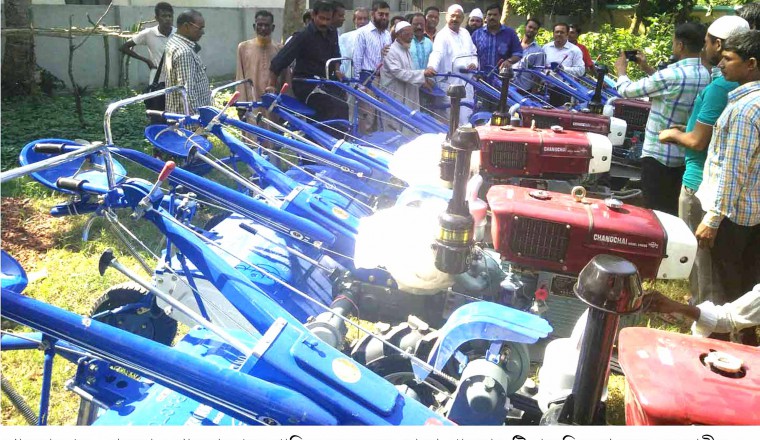 শাহজাদপুর প্রতিনিধিঃ গতকাল মঙ্গলবার শাহজাদপুরে সমন্বিত কৃষি উন্নয়নের মাধ্যমে পুষ্টি ও খাদ্য নিরাপত্তা নিশ্চতকরণ প্রকল্পের আওতায় দরিদ্র ও প্রান্তিক কৃষকদের মাঝে ১৪টি পাওয়ার টিলার বিতরণ করা হয়। অনুষ্ঠানে প্রধান অতিথি হিসাবে উপস্থিত ছিলেন, স্থানীয় সংসদ সদস্য আলহাজ্ব মোঃ হাসিবুর রহমান স্বপন । বিশেষ অতিথি হিসাবে উপস্থিত ছিলেন, উপজেলা চেয়ারম্যান প্রফেসর আজাদ রহমান, উপজেলা নির্বাহী অফিসার শামীম আহমেদ, উপজেলা ভাইস চেয়ারম্যা মুস্তাক আহমেদ প্রমূখ । উপজেলা কৃষি বিভাগ থেকে পৌরসভা সহ ১৩টি ইউনিয়নের কৃষকদের গ্রূপের মধ্যে- চলমান কৃষি যন্ত্রপাতি বিতরনের অংশ হিসাবে ভাড়ায় ১৪টি পাওয়ার টিলার বিতরণ করা হয়। এ দিন পাওয়ার টিলার বিতরনের পর প্রধান অতিথি কৃষি প্রণোদনার আওতায় ৭০০ জন কৃষককে গম বীজ এবং ৩০ জন কৃষককে ভূট্টা বীজ ও সার বিতরণ করা হয়। শাহজাদপুর কৃষি বিভাগ সূত্রে জানা গেছে, সুবিধা ভোগী কৃষকদের নিয়ে কমিটি করে এ সব পাওয়ার টিলার জমি চাষের জন্য ভাড়া দেয়া হবে। অনুষ্ঠানে সভাপতিত্ব করেন কৃষিবিদ উপজেলা কৃষিকর্মকর্তা মোঃ মনজু আলম সরকার ।