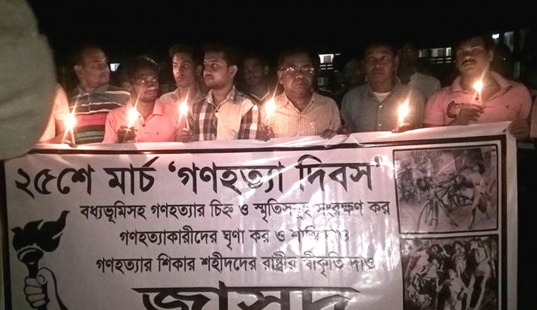 ফারুক হাসান কাহার ও এম এ হান্নান শেখ : গতকাল ২৫ মার্চ শনিবার গণহত্যা দিবস উপলক্ষে শাহজাদপুর উপজেলা জাসদের উদ্যোগে নানা কর্মসূচী পালিত হয়েছে। বধ্যভূমিসহ গণহত্যার চিহ্ন ও স্মৃতি সংরক্ষণ, গণহত্যাকারীদের ঘৃণা ও শাস্তি, গণহত্যার শিকার শহিদদের রাষ্ট্রীয় স্বীকৃতির দাবিতে সন্ধ্যা ৭ টায় পৌরসদরের হাসিবুর রহমান স্বপন সড়ক সংলগ্ন উপজেলা জাসদের দলীয় কার্যালয় থেকে উপজেলা জাসদের সংগ্রামী সভাপতি ও সাপ্তাহিক জনতার মশাল পত্রিকার সম্পাদক শফিকুজ্জামান শফির নেতৃত্বে একটি মিছিল বের হয়। মিছিলটি পৌরসদরের প্রধান প্রধান সড়ক প্রদক্ষিণ করে শাহজাদপুর সরকারি কলেজ কেন্দ্রীয় শহিদ মিনার চত্বরে গিয়ে শেষ হয়। ১৯৭১ সালের ২৫ মার্চ কালোরাত্রে নিহত সকল শহিদদের প্রতি বিন¤্র শ্রদ্ধা নিবেদনে শহিদ মিনারের বেঁদিতে জাসদ নেতৃবৃন্দ মোমবাতি প্রজ্জ্বলন করেন। এ সময় অন্যান্যের মধ্যে উপস্থিত ছিলেন, শাহজাদপুর উপজেলা জাসদের সাধারণ সম্পাদক আবু হাসান খান মনি, সিরাজগঞ্জ জেলা জাসদের সাংগঠনিক সম্পাদক হাসানুজ্জামান তুহিন, পৌর জাসদের সহ-সভাপতি সাইদুল ইসলাম, সহ-সভাপতি সোহেল ফারুকী, সিরাজগঞ্জ জেলা যুবজোটের সহ-সভাপতি সায়েমুল ইসলাম শোভন, যুগ্ম-সাধারণ সম্পাদক ইকবাল হোসেন চৌধুরী, সহ-সাধারণ সম্পাদক মেহেদি হাসান লিটন প্রমূখ। এ সময় শাহজাদপুর উপজেলা জাসদ ও এর সহযোগী সংগঠনের নেতাকর্মী ও সমর্থকবৃন্দ উপস্থিত ছিলেন।
