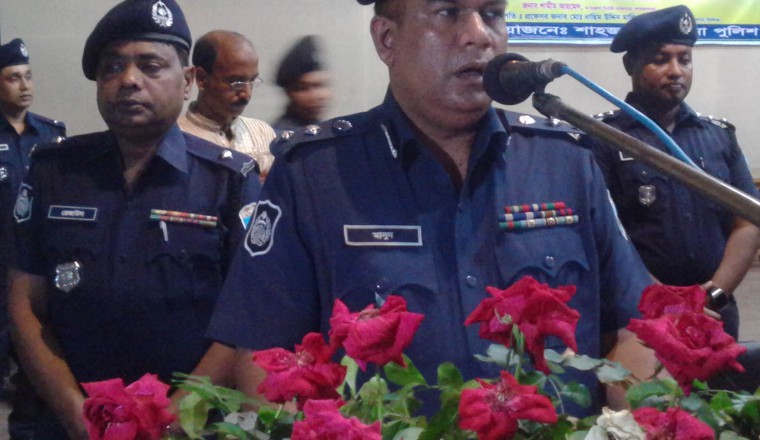 শাহজাদপুর প্রতিনিধিঃ বুধবার বিকেলে সিরাজগঞ্জের শাহজাদপুর রবীন্দ্র কাচারীবাড়ি অডিটরিয়ামে জঙ্গী বিরোধী কমিউনিটি পুলিশিং সমাবেশ অনুষ্ঠিত হয়েছে। শাহজাদপুর থানা পুলিশ আয়োজিত এ সমাবেশে প্রধান অতিথি ছিলেন রাজশাহী রেঞ্জের অতিরিক্ত ডিআইজি ( প্রশাসন ও অর্থ) মাসুদুর রহমান ভূইয়া। প্রফেসর নাছিম উদ্দিন মালিথার সভাপতিত্বে অনুষ্ঠিত এ সমাবেশে বক্তব্য রাখেন, সিরাজগঞ্জের পুলিশ সুপার মিরাজ উদ্দিন আহম্মেদ, উপজেলা চেয়ারম্যান আজাদ রহমান, ভাইস চেয়ারম্যান মুস্তাক আহমেদ, অতিরিক্ত পুলিশ সুপার আবু ইউসুফ, এএসপি(সার্কেল) আবুল হাসনাত, প্রফেসর আব্দুল আজিজ, সহকারী কমিশনার (ভূমি) আরিফুজ্জামান, উপজেলা নির্বাহী অফিসার শামীম আহমেদ, ওসি রেজাউল হক, ইন্সপেক্টর (তদন্ত) মনিরুল ইসলাম, শামছুল ইসলাম, গোলাম আজম প্রমূখ। বক্তারা বলেন, যে কোন মূল্যে দেশকে জঙ্গী ও সন্ত্রস মুক্ত রাখতে হবে। এ জন্য সবাইকে এক যোগে ঐক্যবদ্ধ ভাবে কাজ করতে হবে।