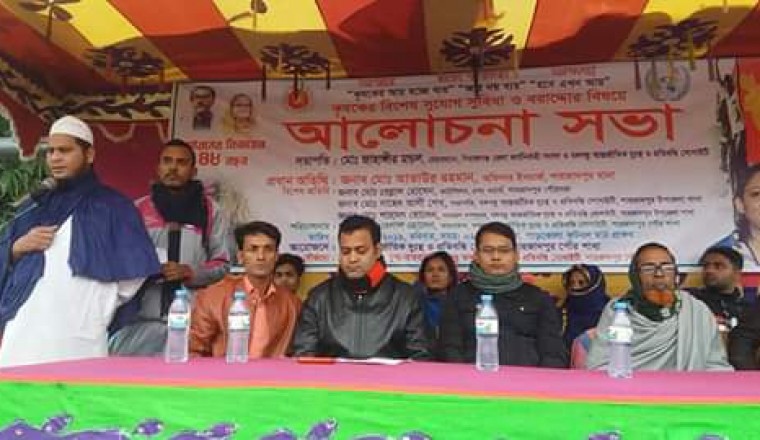 রাজিব আহমেদ, শাহজাদপুর (সিরাজগঞ্জ) প্রতিনিধি: সিরাজগঞ্জের শাহজাদপুরে বঙ্গবন্ধু আন্তর্জাতিক দুস্থ ও প্রতিবন্ধি সোসাইটি শাহজাদপুর পৌর শাখার উদ্যোগে দুস্থ, প্রতিবন্ধি ও প্রান্তিক কৃষকদের নিয়ে আলোচনা সভা অনুষ্ঠিত হয়েছে। আজ রবিবার বিকেলে প্রান্তিক কৃষকদের বিশেষ সুযোগ সুবিধা এবং বরাদ্দ নিয়ে এ আলোচনা সভা অনুষ্ঠিত হয়। বঙ্গবন্ধু আন্তর্জাতিক দুস্থ ও প্রতিবন্ধি সোসাইটি সিরাজগঞ্জ জেলা শাখার চেয়ারম্যান মোঃ জাহাঙ্গীর মণ্ডলের সভাপতিত্বে এবং বঙ্গবন্ধু আন্তর্জাতিক দুস্থ ও প্রতিবন্ধি সোসাইটি, শাহজাদপুর পৌর শাখার আহ্বায়ক মোঃ বেলাল হোসেনের সঞ্চালনায় এ আলোচনা সভায় প্রধান অতিথি ছিলেন শাহজাদপুর থানা অফিসার ইনচার্জ মোঃ আতাউর রহমান, বিশেষ অতিথি ছিলেন শাহজাদপুর পৌরসভার ৫ নং ওয়ার্ড কাউন্সিলর মোঃ বেল্লাল হোসেন, সাহেদ আলী শেখ, শাহাদৎ হোসেন, আব্দুর রাজ্জাক, মোঃ শাহীন প্রমুখ। বক্তারা প্রান্তিক কৃষকদের স্বপ্নের শস্যের ন্যায্য মূল্য ও বিভিন্ন অধিকার নিয়ে সচেতনতা মূলক বক্তব্য দেন।