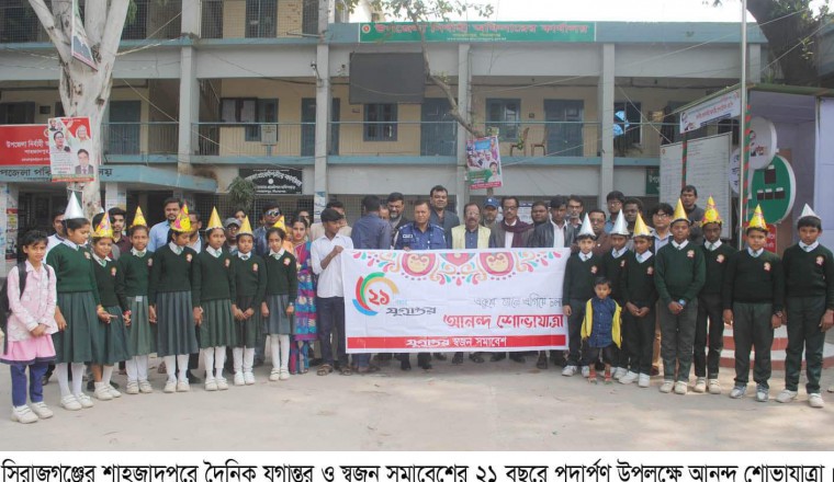 ফারুক হাসান কাহার, শাহজাদপুর (সিরাজগঞ্জ) প্রতিনিধি : সিরাজগঞ্জের শাহজাদপুরে বর্ণাঢ্য আয়োজনের মধ্যদিয়ে শনিবার সকাল থেকে দিনব্যাপী যুগান্তর উৎসব পালিত হয়েছে। দিনব্যাপী এ উৎসবের মধ্যে ছিল,বর্ণাঢ্য আনন্দ শোভাযাত্রা,কেক টাকা,মিষ্টি বিতরণ,আলোচনাসভা ও সাংস্কৃতিক অনুষ্ঠান। সাংস্কৃতিক অনুষ্ঠানের মধ্যে ছিল,কবিতা আবৃত্তি,নাচ ও গান। শাহজাদপুর উপজেলা পরিষদ হলরুমে শাহজাদপুর যুগান্তর স্বজন সমাবেশ এ উৎসবের আয়োজন করে। এতে প্রধান অতিথি ছিলেন শাহজাদপুর উপজেলা চেয়ারম্যান প্রফেসর আজাদ রহমান। বিশেষ অতিথি ছিলেন,শাহজাদপুর উপজেলা নির্বাহী অফিসার শাহ মোঃ শামসুজ্জোহা,রবীন্দ্র বিশ্ববিদ্যালয়ের রবীন্দ্র অধ্যায়ন বিভাগের চেয়ারম্যান সহকারী অধ্যাপক ড.ফখরুল ইসলাম,শাহজাদপুর থানার অফিসার ইনচার্জ আতাউর রহমান। শাহজাদপুর উপজেলা যুগান্তর স্বজন সমাবেশের সভাপতি শাহবাজ খান সানির সভাপতিত্বে অনুষ্ঠিত এ অনুষ্ঠানে বক্তব্য রাখেন, সহকারী অধ্যাপক মাহবুবুর রহমান মিলন, চৌহালি উপজেলা প্রেসক্লাবের সভাপতি মাহমুদুল হাসান,শাহজাদপুর প্রেসক্লাবের সভাপতি বিমল কুন্ডু,সাধারণ সম্পাদক শফিকুজ্জামান শফি,প্রেসক্লাব,শাহজাদপুরের সভাপতি আতাউর রহমান পিন্টু,কবি মমতাজ উদ্দিন,কবি ম.জাহান,কবি ও নাট্যকার কাজী শওকত,অধ্যক্ষ জাকারিয়া ইসলাম ঠান্ডু,কবি সোহরাব হোসেন রূপক,কবি বাবুল আক্তার খান,কবি শুকুর মাহমুদ,তাকিবুন্নাহার তাকি প্রমূখ। কবিতা আবৃত্তি,নাচ ও গান পরিবেশন করেন শাহজাদপুর পূরবী সঙ্গীত বিদ্যালয়ের শিল্পী আকাশ,কেকা,সুরঞ্জন,শুভ,অঙ্কিতা,নিমাই,শ্যামল কুমার সাহা,আবৃত্তিতে অঙ্কিতা,ইমন হাসান,দীলিপ কুমার,শুভ,সোহরাব হোসেন,আলাউদ্দিন,নৃত্যে শুভশ্রী অঞ্জনা। এ অনুষ্ঠানে সার্বিক সহযোগীতায় ছিলেন,শাহজাদপুর পূরবী থিয়েটার,ভোর হোল ও ফকরুল মেমরিয়াল স্কুল। এ অনুষ্ঠানে উপস্তিত ছিলেন,চৌহালির সাংবাদিক মির্জা শহিদুল ইসলাম (দৈনিক খোলা কাগজ),আল ইমরান মনু (দৈনিক সংবাদ বাংলাদেশ),ইমরান হোসেন আপন (দৈনিক জাগো জনতা), শাহজাদপুরে কর্মরত সাংবাদিক ওমর ফারুক(এশিয়ান টিভি),রাজিব রাসেল( নতুন সময় টিভি), শফিউল ইসলাম লাইফ (দৈনিক ইত্তেফাক),কোরবান আলী লাভলু (দৈনিক সমকাল),আল আমিন হোসেন (দৈনিক দিনকাল), মাসুদ মোশারফ (দৈনিক আজকালের খবর),ফারুক হাসান কাহার (ডেইলি বাংলাদেশ), আমিনুল ইসলাম (দৈনিক খোলা কাগজ), জহুরুল ইসলাম(দৈনিক আমার সংবাদ),সাগর বসাক (দৈনিক করতোয়া),আব্দুল কুদ্দুস (দৈনিক ভোরের কাগজ),সোনা মিয়া(আনন্দ টিভি),বাবুল হোসেন(আনন্দ টিভি),আমিনুল ইসলাম(দৈনিক খোলা কাগজ),মামুন রানা(দৈনিক জনতা),জাকারিয়া মাহমুদ(ঢাকা প্রতিদিন),নয়ন আলী( সময়ের আলো),এমএ হান্নান (বার্তা বাজার)। স্বজন বন্ধুদের মধ্যে উপস্তিত ছিলেন, স্বাধীন,আরমা