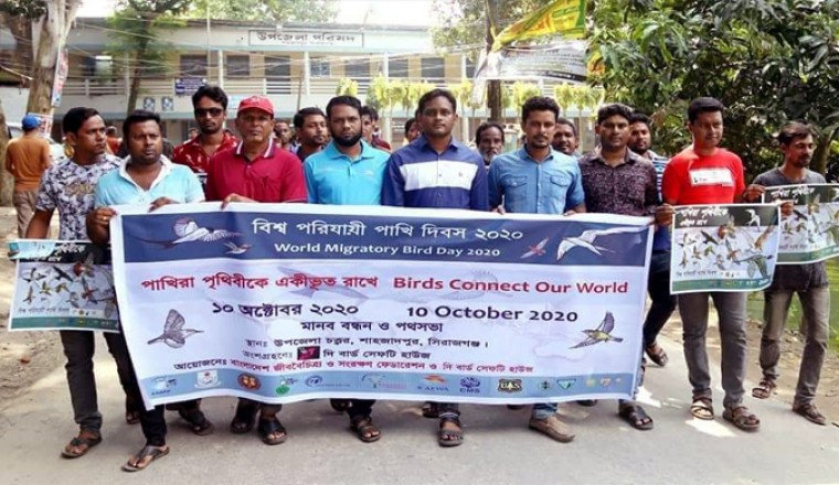 পাখি সংরক্ষণে সকলে এক সঙ্গে কাজ করি এই শ্লোগানকে সামনে রেখে সিরাজগঞ্জের শাহজাদপুর উপজেলায় বিশ্ব পরিযায়ী পাখি দিবস পালিত হয়েছে। শনিবার সকালে বিশ্ব পরিযায়ী পাখি দিবস উপলক্ষে উপজেলা চত্বরে স্বেচ্ছাসেবী সংগঠন দি বার্ড সেফটি হাউজের উদ্যোগে নানান কর্মসূচি পালিত হয়।