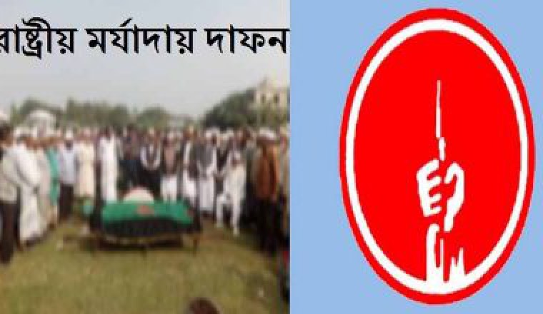 নিজস্ব প্রতিনিধিঃ সিরাজগঞ্জের শাহজাদপুর উপজেলার প্রবীণ আওয়ামীলীগ নেতা, বিশিষ্ট সমাজ সেবক ও বীর মুক্তিযোদ্ধা মীর আব্দুল হাকিম মাস্টারকে রাষ্ট্রীয় মর্যাদায় দাফন সম্পন্ন করা হয়েছে। গতকাল রোববার সকাল সাড়ে ১০টার দিকে কৈজুরী ফাজিল মাদ্রাসা মাঠে পুলিশের একটি চৌকশদল জাতীয় পতাকায় আচ্ছাদিত মরহুমের মরদেহকে গার্ড অফ অনার প্রদান করেন। এ সময় শাহজাদপুর উপজেলা নির্বাহী অফিসার আলীমুন রাজীব সেখানে উপস্থিত থেকে তাকে ফুলের তোরা দিয়ে শেষ শ্রোদ্ধ নিবেদন ও সালাম প্রদান করেন। পরে সেখানে অনুষ্ঠিত তার নামাজে জানাজায় স্থানীয় মুক্তিযোদ্ধা, রাজনীতিবিদ, সামাজিক, সাংস্কৃতিক, সমাজসেবক ও সাংবাদিকবৃন্দ অংশ নেন। জানাজা পূর্ব সংক্ষিপ্ত সমাবেশে বক্তব্য রাখেন, শাহজাদপুর উপজেলা চেয়ারম্যান প্রফেসর আজাদ রহমান, ভাইস চেয়ারম্যান মুস্তাক আহমেদ, সাবেক এমপি নুরুল ইসলাম তালুকদার চাঁন মিয়া,মিল্কভিটার ভাইস চেয়ারম্যান পিপি শেখ আব্দুল হামিদ লাভলু, কৈজুরী ইউপি চেয়ারম্যান সাইফুল ইসলাম, অধ্যক্ষ কামাল পাশা, সাবেক অধ্যক্ষ বজলুর রশিদ, মুক্তিযোদ্ধা কমান্ডার খালেকুজ্জামান খালেক, পৌর যুবলীগের সাধারণ সম্পাদক আমিরুল ইসলাম সাহু, প্রফেসর আব্দুস সামাদ, সাবেক উপজেলা ভাইস চেয়ারম্যান গোলাম মওলা প্রমূখ। বক্তারা মরহুমের রুহের মাগফিরাত কামনা করেন ও তার শোকসন্তোপ্ত পরিবারের প্রতি সমবেদনা জানিয়ে বক্তব্য রাখেন। উল্লেখ্য, শনিবার দুপুর ২টার দিকে তিনি মস্তিস্কে রক্তক্ষরণ জনিত রোগে আক্রান্ত হয়ে ঢাকার একটি হাসপাতালে চিকিৎসাধীন অবস্থায় মৃত্যুবরণ করেন। মৃত্যুকালে তিনি স্ত্রী, ২ ছেলে, ২ মেয়ে, নাতী-নাতনী সহ অসংখ্য গুণগ্রাহী রেখে গেছেন। পরে কৈজুরী কবরস্থানে মরহুমের দাফন সম্পন্ন করা হয়।