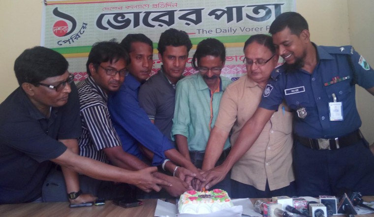 মোঃ মামুন বিশ্বাস,শাহজাদপুর :- শাহজাদপুর রোববার সকাল ১১ টায় দৈনিক ভোরের পাতার পত্রিকার ১ দশক পূতি ও ১১ বছরে পদার্পণ উপলক্ষ্যে আলোচনা সভা এবং দিবস বরণ অনুষ্ঠান উদযাপন করা হয়েছে। শাহজাদপুর উপজেলা শহরের প্রাণকেন্দ্রের মনিরামপুর বাজারের অবস্থিত “ সাংবাদিকতা ও সামাজিক উন্নয়ণ ফোরাম” কার্যালয়ে উপস্থিত অতিথী ও সাংবাদিকবৃন্দরা কেক কেটে “ভোরের পাতা” পত্রিকার ১০ম বছর পূর্তি অনুষ্ঠানের উদ্ভোধন ও বরণের আনুষ্ঠানিকতা সম্পন্ন করেন। পরে শাহজাদপুরসংবাদ ডটকমের প্রধান সম্পাদক ও ফোরামের সভাপতি বিশিষ্ট মুক্তিযোদ্ধা, সাংবাদিক, কলামিষ্ট ও গবেষক আবুল বাশারের সভাপতিত্বে এক আলোচনা সভা অনুষ্ঠিত হয়। এ উদ্ভোধনী ও আলোচনা অনুষ্ঠানে প্রধান অতিথী ও বিশেষ অতিথী হিসেবে উপস্থিত ছিলেন, শাহজাদপুর থানার ও’সি (তদন্ত) আব্দুল হাই এবং ইলেট্রনিক মিডিয়া চ্যানেল ৭১ ও ভোরের পাতার জেলা প্রতিনিধি মাসুদ পারভেজ। বক্তব্য রাখেন, ফোরামের সাধারণ সম্পাদক শফিকুল ইসলাম ফারুক, ভোরের পাতার শাহজাদপুর প্রতিনিধি মোঃ মামুন বিশ্বাস ও ভোরের পাতার উল্লাপাড়া প্রতিনিধি মোঃ রেজাউল করিম, ইনকিলাব প্রতিনিধি শামছুর রহমান শিশির, দিনকাল প্রতিনিধি আল আমিন হোসেন। অনুষ্ঠানে অন্যান্যদের মধ্যে উপস্থিত ছিলেন, চ্যানেল নাইনের সুজিত সরকার, খবরবাংলার ফরিদ আহমেদ চঞ্চল, দৈনিক কলম সৈনিক এর নিজাম উদ্দিন, ফোরামের সদস্য আলাউদ্দিন ও বিশিষ্ট ব্যবসায়ী ছানোয়ার হোসেন সহ অন্যান্য সুধীবৃন্দ। অলোচনায় বক্তব্য রাখতে গিয়ে প্রধান অতিথী বলেন, সব শ্রেনী পেশার মানুষকে নিয়েই এ বাংলাদেশ। মানুষের কল্যাণ সাধনই মানুষের কাজ । এবিষয়ে মানুষকে স্বচেতন করে গড়া তোলা এবং মানবসভ্যতা সৃষ্টিতে সহায়ক ভূমিকা পালন করে থাকে দেশের প্রকাশিত পত্র পত্রিকাগুলো। এক্ষেত্রে বিগত ১০ বছর ধরে ভোরের ভাতা নানা আঙ্গিকে ভূমিকা রাখছে। ভবিষ্যতেও পত্রিকাটি এ ধারা অব্যাহত রাখবে এটাই আমাদের বিশ্বাস ও প্রত্যাশা। ভোরের পাতার সাবির্ক সাফল্য কামনা করছি। সভাপতি তাঁর বক্তব্যে বলেন, প্রকাশনার ক্ষেত্রে ‘ভোরের পাতার’ গণমুখী একটি নিজস্ব ধারা ও দর্শন রয়েছে। ধাপে ধাপে তাদের নিজস্ব দর্শনের প্রতিফলনে পত্রিকার সাথে সংশ্লিষ্ট সম্পাদনা পরিষদ কাজ করছেন। আমি ‘ভোরের পাতার’ উত্তর উত্তর সাফল্য ও মঙ্গল কামনা করছি। ভোরের পাতার ১১ বছরে পদার্পণের এ সাফল্য সময়য়োপযোগী ও তাৎপর্যপূর্ন।