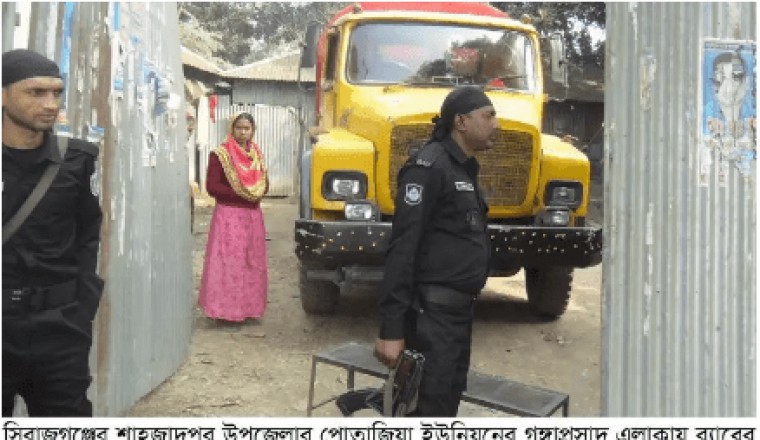 নিজস্ব প্রতিবেদক : গতকাল রোববার দুপুরে গোপন সংবাদের ভিত্তিতে শাহজাদপুর উপজেলার পোতাজিয়া ইউনিয়নের গঙ্গাপ্রসাদ ও নুকালী এলাকার ৫ টি অবৈধ ভেজাল জ্বালানী তেল (পেট্রোল-অকটেন) তৈরীর কারখানায় র‌্যাব-১২ সিরাজগঞ্জ এর একটি দল অভিযান চালিয়ে বিপুল পরিমাণ ভেজাল জ্বালানী তেল তৈরীর কেমিক্যাল ও সরঞ্জাম উদ্ধার করেছে। এ ছাড়া একটি ট্যাংকলরিসহ ২ কারখানায় তৈরী ১৫ হাজার লিটার ভেজাল পেটোল ও অকটেন জব্দ ও ভেজাল কারবারের সাথে জড়িত থাকার অপরাধে কারখানার ৬ মালিক-কর্মচারিকে আটক করা হয় । আটক ব্যক্তিরা হল, শাহজাদপুর উপজেলার গঙ্গাপ্রসাদ গ্রামের হাকিম উদ্দিনের ছেলে ভেজাল পেট্রোল তৈরীর কারখানার মালিক হাসান মাহমুদ (৩১), দ্বাবাড়িয়া গ্রামের হাজী আবু তাহেরের ছেলে মহির উদ্দিন মোল্লা (৩০), তার সহযোগী গঙ্গাপ্রসাদ গ্রামের চাঁদ মুন্সির ছেলে শফিকুল মুন্সি (৩২), নবীর উদ্দিনের ছেলে ছোলায়মান মুন্সি (৩৫), ট্যাংকলরি চালক চাপাইনবাবগঞ্জ জেলার গোমস্তাপুর উপজেলার রহনপুর গ্রামের মহসিন আলীর ছেলে আব্দুস ছামাদ (৩৫), একই উপজেলার তেঁতুলতলা গ্রামের গোলাম মোস্তফার ছেলে রবিউল ইসলাম (৩৫)। পরে ঘটনাস্থলেই ভ্রাম্যমান আদালত পরিচালনা করে আটকদের বিভিন্ন মেয়াতে সাজা দেওয়া হয়। এর মধ্যে ভ্রাম্যমান আদালতের নির্বাহী ম্যাজিস্ট্রেট ও শাহজাদপুর উপজেলার সহকারী কমিশনার(ভূমি) জাকিয়া সুলতানা কারখানা মালিক মহির মোল্লাকে ৫০ হাজার টাকা জরিমানা করেন। এ ছাড়া অপর কারখানার মালিক হাসান মাহমুদ, ট্যাংকলরি চালক আব্দুস ছামাদ, রবিউল ইসলামকে ৬ মাস ও শফিকুল মুন্সি ও ছোলায়মান মুন্সিকে ১ মাস করে বিনাশ্রম কারাদন্ড প্রদান করে শাহজাদপুর থানা পুলিশে সোপর্দ করেন। শাহজাদপুর থানা পুলিশ এদিনই তাদের সিরাজগঞ্জ জেলহাজতে পাঠিয়ে দেন। এ ছাড়া আটক ট্যাংকলরিটি শাহজাদপুর থানা হেফাজতে ও ভেজাল জ্বালানী তেল তৈরীর কারখানাগুলো সীলগালা করে দেন। এ বিষয়ে সিরাজগঞ্জ র‌্যাব-১২ এর ইন্সপেক্টর মোঃ সবুজ মিয়া জানান, 'শাহজাদপুর উপজেলার বাঘাবাড়ি নৌবন্দরে অবস্থিত বাংলাদেশ পেট্রোলিয়াম করপোরেশন (বিপিসি) অয়েল ডিপোর পাশে বগুড়া-নগরবাড়ী মহাসড়কের নুকালি ও গঙ্গাপ্রসাদ নামক স্থানের ৫ টি কারখানায় দীর্ঘদিন ধরে ভেজাল পেট্রোল ও অকটেন তৈরী করে ভেজালকারীরা উত্তরাঞ্চলের রাজশাহী ও রংপুর বিভাগের ১৬ জেলার বিভিন্ন এলাকায় ভেজাল জ্বালানী তেল সরবরাহ করে আসছিলো। এ ভেজাল জ্বালানী তেল ব্যবহার করায় এ অঞ্চলের যানবাহনের ইঞ্জিনে প্রায়শই ত্রুটি দেখা দিতো ও ইঞ্জিন বিকল হয়ে এসব যানবাহন দূর্ঘটনায় কবলে পড়ে ব্যাপক ক্ষয়ক্ষতি সাধিত হতো ও প্রাণহানী ঘটতো। এ ধরনের অনাকাঙ্ক্ষিত ক্ষয়ক্ষতি রোধে শাহজাদপুরে অভিযান চালিয়ে হাসান মাহমুদের কারখানা 