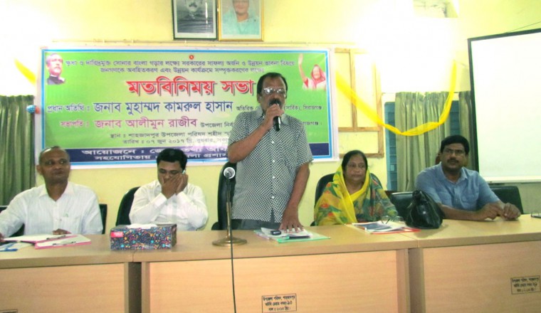 শাহজাদপুর (সিরাজগঞ্জ) প্রতিনিধি : ‘উন্নয়নের গণতন্ত্র শেখ হাসিনার মূলমন্ত্র, শিক্ষা নিয়ে গড়বো দেশ-শেখ হাসিনার বাংলাদেশ, শেখ হাসিনার দর্শন-বাংলাদেশের উন্নয়ন ও শেখ হাসিনার বাংলাদেশ ক্ষুধা হবে নিরুদ্দেশ’- এসব প্রতিপাদ্য বিষয়কে সামনে রেখে ক্ষুধা ও দারিদ্রমুক্ত সোনার বাংলা গড়ার লক্ষ্যে সরকারের সাফল্য অর্জন ও উন্নয়ন ভাবনা বিষয়ে জনগণকে অবহিতকরণ এবং উন্নয়ন কার্যক্রমে সম্পৃক্তকরণের লক্ষ্যে জেলা তথ্য অফিসের আয়োজনে আজ বুধবার শাহজাদপুর উপজেলা শহিদ স্মৃতি মিলনায়তনে সংবাদ সম্মেলন ও মতবিনিময় সভা অনুষ্ঠিত হয়েছে। সকালে শহিদ স্মৃতি সম্মেলন কক্ষে আয়োজিত সংবাদ সম্মেলন ও মতবিনিময় সভায় প্রধান অতিথি হিসেবে বক্তব্য রাখেন, উপজেলা পরিষদ চেয়ারম্যান প্রফেসর আজাদ রহমান। তিনি বর্তমান সরকারের সাফল্য ও অগ্রগতির চিত্র তুলে ধরে বলেন, ‘ বর্তমান সরকারের শাষণামলে দেশে অতি দারিদ্রতার হার অনেকাংশে কমেছে ও মাথাপিছু আয় বেড়েছে। এছাড়া শিশু মৃত্যুর হার কমেছে, বন্ধ কমিউনিটি ক্লিনিক চালুকরণ, বিদ্যালয়ে ভর্তির হার বৃদ্ধি, খাদ্যশষ্য উৎপাদন বৃদ্ধি, বিদ্যুৎ উৎপাদন বৃদ্ধি, রেকর্ড পরিমান নতুন বিদ্যুৎ সংযোগ প্রদান, মুক্তিযোদ্ধার ভাতার পরিমান বৃদ্ধি, প্রাথমিক বিদ্যালয় সরকারিকরণের হার বৃদ্ধি, অতি দরিদ্রদের জন্য ১০ টাকা কেজি দরের চাল বিতরণ কার্যক্রম, দেশের প্রান্তিক পর্যায়ে ইন্টারনেট সেবাপ্রদানের সুব্যবস্থা, বছরের প্রথম দিনে শিক্ষার্থীদের বিনামূল্যে বই বিতরণ, মানবতা বিরোধী অপরাধের বিচার করাসহ দেশের সকল খাতে অগ্রগতি সাধিত হয়েছে। ডিজিটাল বাংলাদেশ বিনির্মানে প্রান্তিক পর্যায়ে ইন্টারনেট সেবা প্রদানের মাধ্যমে সরকারি সকল প্রকার ফরম ডাইনলোড ও পূরণের সেবা, জন্ম-মৃত্যু নিবন্ধন, পাবলিক পরীক্ষার ফলাফল, বিশ্ববিদ্যালয়ে ভর্তি, মোবাইল ব্যাংকিং, বিদেশ গমনের জন্য সকল প্রকার তথ্য, পাসপোর্ট ফরম পূরণ, ভিসা যাচাই, রেলওয়ে টিকেট সিস্টেম, ই-টেন্ডার, ই-সার্ভিস সিস্টেম, ই-পরচা, আয়কর নিবন্ধন, নাগরিক পরিসেবার বিল পরিশোধসহ ’২ শতাধিক সেবা প্রদান করা হচ্ছে।’ শাহজাদপুর উপজেলা নির্বাহী অফিসার আলীমুন রাজীবের সভাপতিত্বে অনুষ্ঠিত ওই সভায় ২০১৬ সাল পর্যন্ত বর্তমান সরকারের সাফল্য ও অগ্রগতির তুলনামূলক চিত্র তুলে ধরে লিখিত বক্তব্য পাঠ করেন, সিরাজগঞ্জ জেলা তথ্য অফিসার আব্দুর রহিম। অনুষ্ঠানে জেলা তথ্য অফিসার সরকারের উন্নয়নমূলক কর্মকান্ডের প্রকৃত চিত্র জনগণের মাঝে তুলে ধরার জন্য তিনি উপস্থিত সাংবাদিকদের প্রতি আহবান জানান। কারণ, সাংবাদিকদের ছাড়া সরকারের এ উন্নয়নমূলক কার্যক্রমের বিষয়টি জনগণকে অবহিত করণের আর কোন বড় মাধ্যম নেই বলেও জেলা তথ্য অফিসার উল্লেখ করেন। ওই সভা