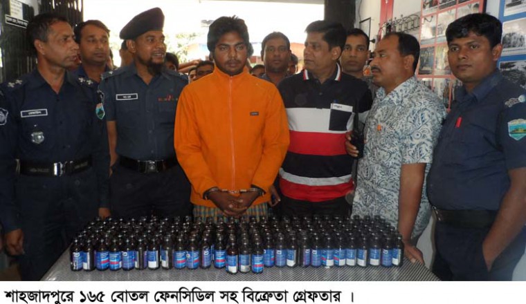 শাহজাদপুর প্রতিনিধিঃ বৃহস্পতিবার শাহজাদপুর থানার এসআই রেজাউল করিম গোপন সংবাদের ভিত্তিতে অভিযান চালিয়ে উপজেলার বাড়াবিল গ্রাম থেকে আলহাজ আলী (২৫) নামের এক মাদক ব্যবসায়ীকে ১৬৫ বোতল ফেনসিডিল সহ গ্রেফতার করেছে। পুলিশ জানায়, ইয়ার আলীর ছেলে আলহাজ আলী পুলিশের চোখ ফাকি দিয়ে দীর্ঘদিন ধরে অবৈধভাবে ফেনসিডিল বিক্রি করে আসছিল। অবশেষে পুলিশ তাকে গ্রেফতার করতে সক্ষম হয়েছে। এ ব্যাপারে শাহজাদপুর থানায় মাদক আইনে মামলা দায়ের করা হয়েছে।