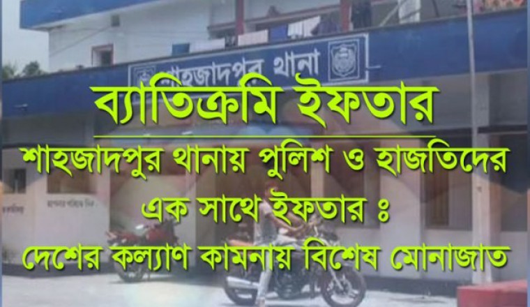 শাহজাদপুর প্রতিনিধিঃ গতকাল সোমবার শাহজাদপুর থানা পুলিশের পক্ষ থেকে ইফতার ও দোয়া মাহফিলের আয়োজন করা হয়। ইন্সপেক্টর (তদন্ত) মনিরুল ইসলামের নের্তৃত্বে অনুষ্ঠিত এ ইফতার ও দোয়া মাহফিলে থানার সকলপুলিশ কর্মকর্তা কন্সটেবল, কর্মচারি ও এলাকার সুধীবৃন্দ অংশ নেয়। এ সময় থানা হাজতের বন্দিদেরকেও উন্নতমানের ইফতার পরিবেশন করা হয় এবং এক সাথে ইফতার করা হয়। নজিরবিহীন এ ইফতার মাহফিলে অংশ নিতে পেরে হাজতিরাও আবেগাপ্লুত হয়ে পরেন। এ সময় সবাই এক সাথে দেশের কল্যাণ কামনা করে বিশেষ দোয়া ও মোনাজাত করা হয়। এ ছাড়া আজ মঙ্গল বার মেয়র হালিমূল হক মিরুর নের্তৃত্বে শাহজাদপুর পৌর সভায় এক ইফতার ও দোয়া মাহফিলের আয়োজন করা হয়। এতে পৌর সভার সকল কাউন্সিলর, কর্মকর্তা-কর্মচারী ও এলাকার সুধীবৃন্দ উপস্থিত থেকে দোয়া মাহফিলে অংশ নেন। অপর দিকে রবীন্দ্র কাছারিবাড়ি মিলনায়তনে শাহজাদপুর উপজেলা বিএনপি ও শহর বিএনপি’র উদ্যোগে এক ইফতার ও দোয়া মাহফিল অনুষ্ঠিত হয়। শাহজাদপুর উপজেলা বিএনপি সভাপতি হুসেইন শহিদ মাহমুদ গ্যাদনের সভাপতিত্বে অনুষ্ঠিত ইফতার পুর্ব আলোচনা সভায় বক্তব্য রাখেন , বিএনপি’র জাতীয় নির্বাহী কমিটির সদস্য ও সাবেক সংসদ সদস্য কামরুদ্দিন এহিয়া খান মজলিস সরোয়ার, শাহজাদপুর উপজেলা বিএনপি’র সাধারন সম্পাদক ইকবাল হোসেন হিরু, উপজেলা বিএনপি’র সিনিয়র সহ-সভাপতি সাবেক পৌর মেয়র নজরুল ইসলাম, যুগ্ম-সাধারন সম্পাদক আরিফুজ্জামান আরিফ, সাংগঠনিক সম্পাদক রেজাউল ইসলাম রাজা, শহর বিএনপি’র সাধারণ সম্পাদক কে,এম হাবিবুল হক সাব্বির, বিএনপি নেতা মাসুদ রানা, তাঁত শ্রমিক ইউনিয়নের সাধারণ সম্পাদক আল-মাহমুদ। এ আলোচনা সভা শেষে দোয়া মাহফিলে বিএনপি’র প্রতিষ্ঠাতা জিয়াউর রহমান ও আরাফাত রহমান কোকোর আত্মার মাগফেরাত কামনা ও বিএনপি চেয়ারপার্সন বেগম খালেদা জিয়া এবংতারেক রহমানের দীর্ঘায়ু কামনা করে বিশেষ মোনাজাত করা হয়। এ ইফতার ও দোয়া মাহফিলে শাহজাদপুর উপজেলা বিএনপি ও এর সকল অঙ্গ ও সহযোগী সংগঠনের নেতৃবৃন্দ উপস্থিত ছিলেন।