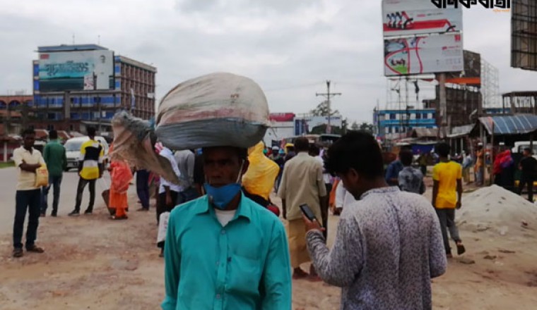 ঈদের ছুটি শেষে ঢাকামুখী মানুষের ভিড় বাড়তে শুরু করেছে। কিন্তু গণপরিবহন বন্ধ থাকায় দুর্ভোগ বেড়েছে সাধারণ মানুষের। বুধবার সিরাজগঞ্জ থেকে অসংখ্য পোশাক শ্রমিক ঢাকা, গাজীপুর ও নারায়ণগঞ্জের উদ্দেশ্যে রওনা দিয়ে আটকা পড়েন বঙ্গবন্ধু সেতু পশ্চিম সংযোগ সড়কের কড্ডা মোড়ে। সকাল থেকে সন্ধ্যা পর্যন্ত তারা অপেক্ষা করেন যানবাহনের জন্য। অনেকে বাধ্য হয়ে নৌকাযোগে যমুনা নদী পার হয়ে বঙ্গবন্ধু সেতু পূর্ব রেলস্টেশনের সামনে থেকে সিএনজিচালিত অটোরিকশা, ইজিবাইকে চন্দ্রা পর্যন্ত যাচ্ছেন। দুয়েকজন মোটরসাইকেলসহ বিকল্প যানবাহনে অতিরিক্ত ভাড়া দিয়ে গন্তব্যে যাওয়ার চেষ্টা করলেও অধিকাংশের ভাগ্য তাও জোটেনি। পোশাক শ্রমিক রেনু, সোহানা, রিপন ও মোস্তফা জানান, তারা গাজীপুরে একটি পোশাক কারখানায় কাজ করেন। করোনাভাইরাসের প্রাদুর্ভাবের পর কারখানা বন্ধ হয়ে গেলে তারা বাড়ি ফেরেন। আগামী দুয়েক দিনের মধ্যে কারখানা খোলা হবে বলে কর্তৃপক্ষ জানিয়েছে। এরপর ঢাকায় ফেরার জন্য বাড়ি থেকে বের হন তারা। কিন্তু গণপরিবহন চলাচল বন্ধ থাকায় সকাল থেকে কড্ডার মোড়েই বসে আছেন তারা। বেশ কয়েকজনকে দেখা যায় মোটরসাইকেলযোগেই ঢাকার পথে রওনা হয়েছেন। মোটরবাইকে ঢাকায় যেতে জনপ্রতি গুণতে দুই থেকে আড়াই হাজার টাকা। পোশাক শ্রমিক মোস্তফা বলেন, যার কাছে টাকা আছে সে বেশি টাকা দিয়েই ঢাকায় ফিরছে। কিন্তু আমাদের কাছে এতো টাকা নেই যে ঢাকায় ফিরব। এ অবস্থায় চাকরি বাঁচাতে হলে হেঁটে যাওয়া ছাড়া কোনো উপায় নেই।