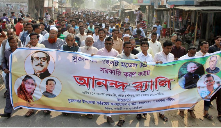 আর কে আকাশ, পাবনা প্রতিনিধি : সুজানগর উপজেলার অন্যতম প্রাচীন বিদ্যাপীঠ সুজানগর পৌর সদরে অবস্থিত ঐতিহ্যবাহী সুজানগর পাইলট মডেল উচ্চ বিদ্যালয় সরকারি করণ করায় মাননীয় প্রধানমন্ত্রী জননেত্রী শেখ হাসিনা, মাননীয় শিক্ষা মন্ত্রী নুরুল ইসলাম নাহিদ ও শিক্ষা সচিব সহ সংশ্লিষ্ট সকলের প্রতি কৃতজ্ঞতা জ্ঞাপন করে এক বর্ণাঢ্য আনন্দ র‌্যালি অনুষ্ঠিত হয়েছে। সুজানগরের সর্বস্তরের জনসাধারণ, বিদ্যালয় পরিচালনা পরিষদ, শিক্ষক-কর্মচারী ও ছাত্র-ছাত্রীদের অংশগ্রহণে শনিবার সকালে বের হওয়া বর্ণাঢ্য এ র‌্যালিটি পৌর শহরের বিভিন্ন সড়ক প্রদক্ষিণ করে সুজানগর পাইলট মডেল উচ্চ বিদ্যালয় মাঠ চত্বরে গিয়ে শেষ হয়। পরে উক্ত বিদ্যালয় পরিচালনা কমিটির সভাপতি ও সুজানগর উপজেলা আওয়ামী লীগের সাধারণ সম্পাদক শাহীনুজ্জামান শাহীনের সভাপতিত্বে এবং প্রধান শিক্ষক আমজাদ হোসেনের স্বাগত বক্তব্যের মধ্যে দিয়ে শুরু হওয়া সভায় বক্তব্য রাখেন সুজানগর উপজেলা আওয়ামী লীগের সহ-সভাপতি আব্দুল জলিল বিশ্বাস, এ্যাডভোকেট শাহজাহান আলী খান, বিদ্যালয়ের প্রাক্তন শিক্ষক ও বীর মুক্তিযোদ্ধা আলহাজ আব্দুস সামাদ মাস্টার, বীর মুক্তিযোদ্ধা তোফাজ্জল হোসেন তোফা, সুলতান প্রাং, আব্দুস ছাত্তার, সুজানগর পূজা উদযাপন পরিষদের সাধারণ সম্পাদক ও উপজেলা আওয়ামী লীগের অর্থ বিষয়ক সম্পাদক শ্রী সুবোদ কুমার নটো, সুজানগর প্রেসক্লাবের সহ-সভাপতি ও মহিলা কলেজের সহকারী অধ্যাপক শাহজাহান আলী মন্ডল, বিদ্যালয়ের কো-অপ্ট সদস্য ও অবসরপ্রাপ্ত শিক্ষা অফিসার এস্কেন্দার আলী, বিদ্যালয়ের অভিভাবক সদস্য শফিকুল ইসলাম খান বাবু, মুশফিকুর রহমান সাচ্ছু, বাবুল আক্তার ও রেজাউল করিম রেজা মন্ডল, পৌর আওয়ামী লীগের সাবেক সভাপতি মাহমুদুজ্জামান মানিক, সুজানগর দলিল লেখক সমিতির সভাপতি আলহাজ¦ ইসমাইল হোসেন, সুজানগর মহিলা কলেজের প্রভাষক জাহিদুল হাসান (রোজ), পৌর আওয়ামী লীগের সভাপতি ফেরদৌস আলম ফিরোজ, বিদ্যালয়ের সহকারী প্রধান শিক্ষক দিলিপ কুমার, শিক্ষক প্রতিনিধি সিদ্দিকুর রহমান, হেলাল উদ্দিন, রোখসানা, বিআরডিবির সভাপতি ও অত্র বিদ্যালয়ের শিক্ষক এ কিউ এম সামছুজ্জোহা বুলবুল, লিয়াকত আলী লিটন, কাজেম উদ্দিন, মো. শফিকুল ইসলাম, আ’লীগ নেতা আব্দল্লাহ আল মামুন, জায়দুল হক জনি, সুজানগর পৌর ছাত্রলীগের সভাপতি এস এম সোহাগসহ স্থানীয় বিভিন্ন পর্যায়ের ব্যক্তিবর্গ। বক্তরা বিদ্যালয়টি সরকারি করণ করায় প্রধানমন্ত্রী জননেত্রী শেখ হাসিনা, শিক্ষা মন্ত্রী নুরুল ইসলাম নাহিদ ও শিক্ষা সচিব সহ সংশ্লিষ্ট সকলের প্রতি কৃতজ্ঞতা জ্ঞাপন করার পাশাপাশি বিদ্যালয়টি সরকারি করণের কাজে সহযোগিতা করায় বাংলাদেশ আওয়ামী লীগ কেন্দ্রীয় উপ-কমিটির সাবেক সহ সম্পাদক কামরুজ