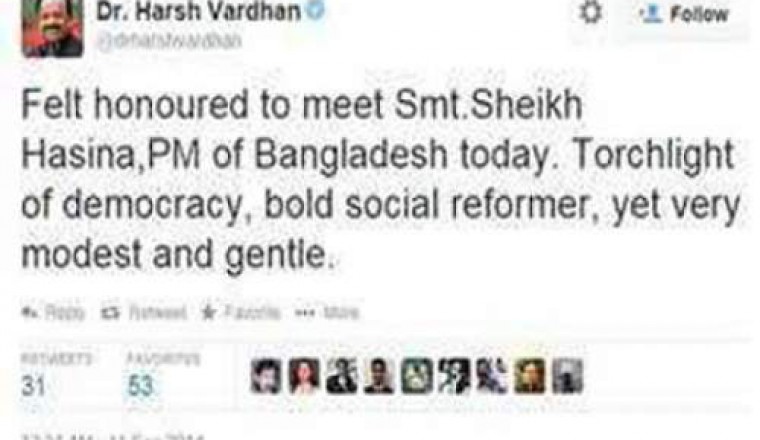 বিশ্ব স্বাস্থ্য সংস্থার আঞ্চলিক বৈঠকে অংশ নিতে বাংলাদেশ সফরে হর্ষবর্ধন গত সপ্তাহে ঢাকা আসেন ৷ গত মঙ্গলবার ওই বৈঠকের উদ্বোধনী অনুষ্ঠানের বক্তব্যে প্রধানমন্ত্রী শেখ হাসিনার ভূমিকার প্রশংসা করে নিজের দায়িত্ব পালনের ক্ষেত্রে তার সহযোগিতা চান বলে তিনি মন্তব্য করেন৷ স্বাস্থ্য খাতে বাংলাদেশ ও ভারতের দ্বিপাক্ষিক সহযোগিতার নানা দিক নিয়েও আলোচনা হয় তাদের মধ্যে৷