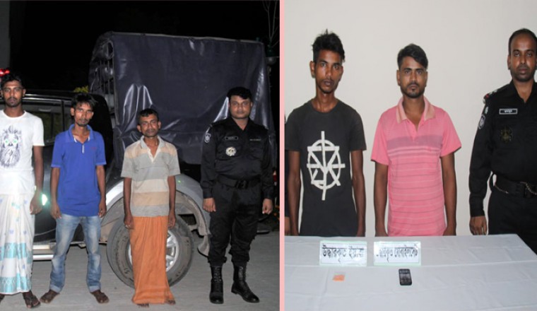 সিরাজগঞ্জ জেলার শাহাজাদপুর থানার সাহাপাড়া গ্রামের মৃত সুনিল চন্দ্র সাহা ছেলে শ্রী বিকাশ চন্দ্র() দরগাপাড়া গ্রামের সিরাজুল ইসলাম ছেলে সৈকত(২৫), আন্ধারকোটাপাড়া গ্রামের আবুসামার ছেলে লিমন মিয়া(২৬), চুনিয়াখালিপাড়া গ্রামের মৃত আব্দুল আউয়াল ছেলে জাহাঙ্গীর সরকার(২৪), চুনিয়াখালিপাড়া গ্রামের ফুলচাঁন এর ছেলে শামছুল ইসলাম(২২), কে ১১৮ পিস ইয়াবা, ৩ টি মোবাইল, ৪ টি সিমসহ গ্রেফতার করে র্যাব ১২ সদস্য।